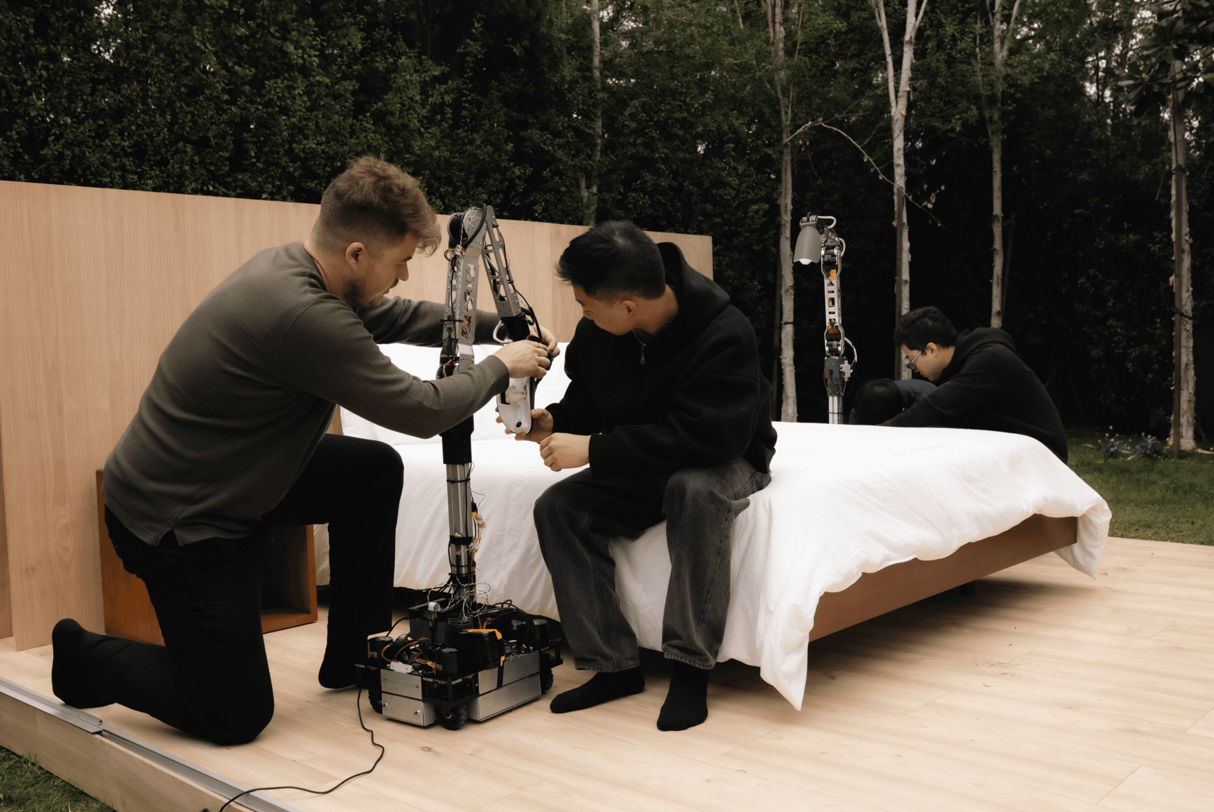 Our backgrounds span robotics research and design, across institutions like Stanford, Berkeley, the University of Toronto, and Harvard, as well as companies including Tesla, Nuro, AMD, MDA, and Apple.